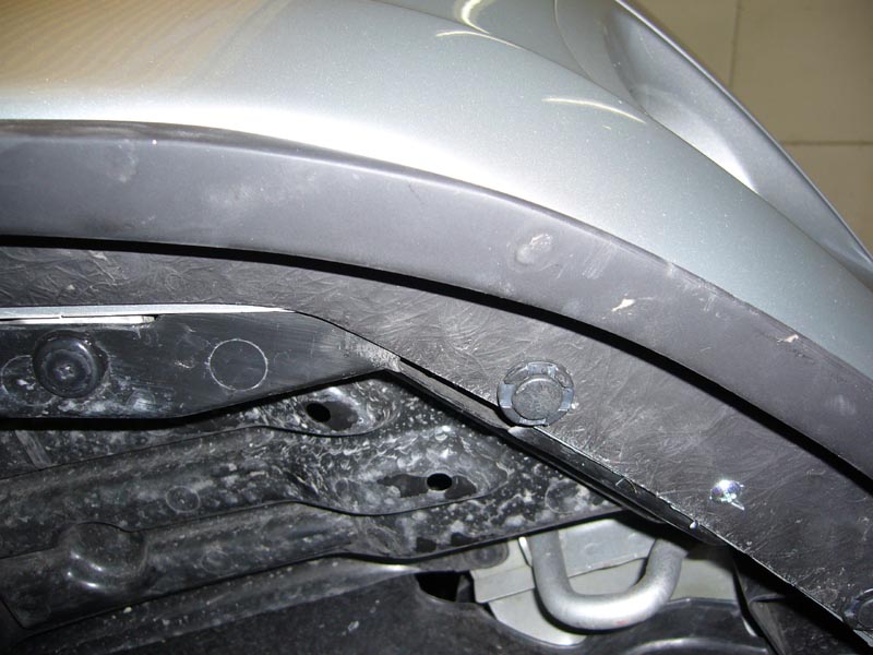 フロントバンパーに付いているフロントタイヤの整流パーツを外し、リップスポイラーを取り付けます。