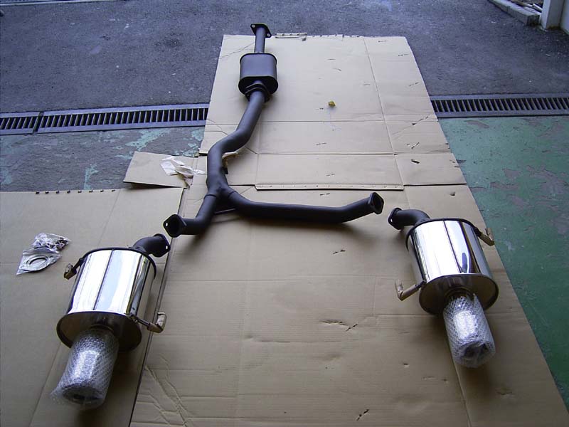 早速メーカーのアイレーシングに連絡してマフラーを選んだのが「レガシィ セミステンレス 左右出し SIMマフラー 車検適合品」です。 フルステンレスもあったのですが、コストパフォーマンスを考えて、セミステンレスを選択しました。 リヤのマフラー(サイレンサー)部はステンレスで、その他のセンターパイプ等は錆びにくいアルスターが使用されています。