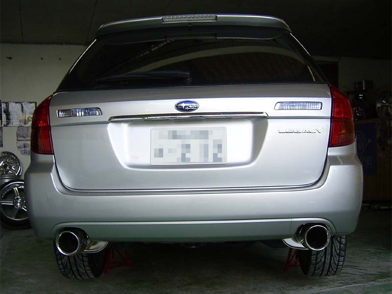 (1) 静かさ、(3) センターマフラー交換、(4) 燃費が良いの条件をクリアしており、良く調べてみると (2) のルックスも「テールエンドはすべて二重管で仕上」となって、全て合格です。 スポーツマフラー(砲弾型)の中には、テールエンドはパイプをそのままカットした形状の物があり、リヤバンパーを見ると排気熱の影響か、マフラーの周りが変色している車を見かけます。 私のイメージするレガシィは、そこまでレーシングなイメージを持った車を考えていないので、やはりバンパーの焼けの無いテールエンドが希望でした。