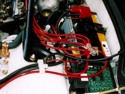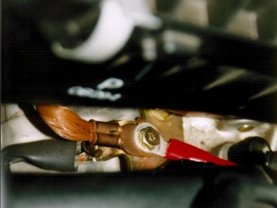 バッテリーのターミナル部 少し見苦しい。今は手直しをしてもう少し綺麗になっています。 |
