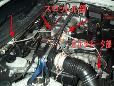 スロットル部を固定してある長いボルトに固定してエンジンヘッドカバーにもアースを取っているのがわかりますか? |