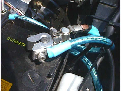 エンジンの下の方にある純正アースポイント(バッテリから直接続部分)の増設です。 |