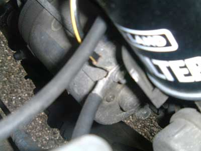 インテークマニホールドからオルタネーターに繋ぎました。 |
