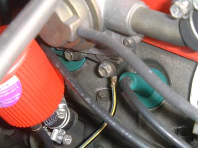 スターターモーターからの黒ケーブルはシリンダーヘッドに繋がります。 |
