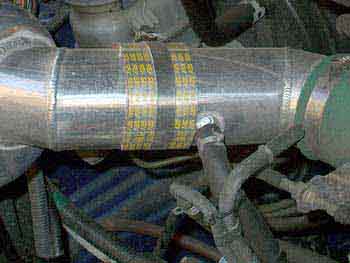 SEVパワーアップシステム インテークパイプとエキゾーストパイプに装着しています。 ATミッションにも取り付けています。 フューフェルホースにはなんちゃってSEVを装着しています。 なんちゃってSEVはトルマリンの塗布した銅板です。 |