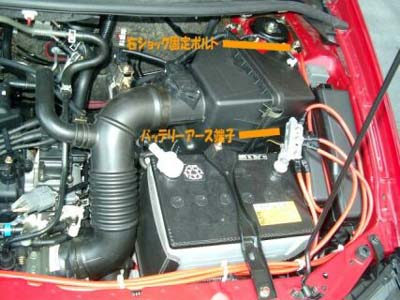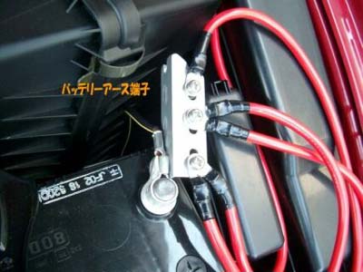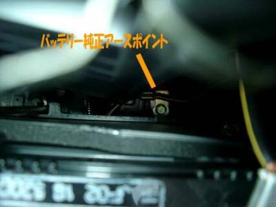バッテリー純正アースポイントへのアクセスはバッテリーと固定用受け皿を撤去しないと無理です。 |