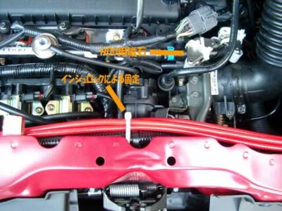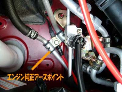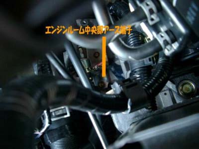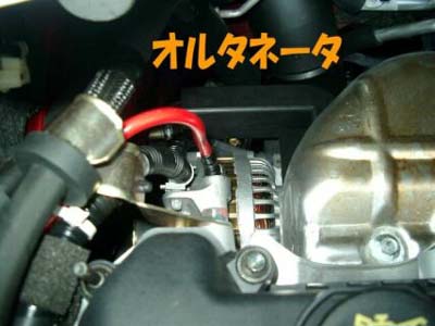 見にくいですが、オルタネータにもアーシング。 |