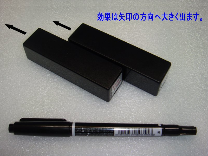 その効果は指向性があり50cm位の範囲であれば、強力にエネルギー伝搬が可能で、車内からでもターゲットを狙っての簡単取付で効果がでます。(マジックテープ、両面テープ)