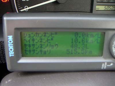 値段は35,000円ぐらいしたと思います。 表示方法や、項目がいろいろ選べて、楽しみながら管理が出来ます。 私の通常モードは、瞬間燃費、平均燃費、燃料使用量、水温(水温計がないので)をデジタル表示させています。 投入後、燃費マネージャーのデータをリセットし、新たにデータどりをおこないます。 |