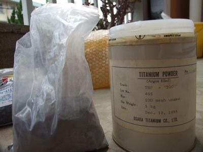 というのも、雑談で父と「チタンとかジルコニウムがあればなぁ」と話をしていたら、父が会社で不要になったものを持って帰って来てくれたからです。(逆に、これがあったのでトルマリンベルト作成を決意したのですが)。 余談になりますが、父のレガシィにもお礼としてトルマリンベルトを装着してあげました。(ただし、ペイント塗布は無いタイプです)。 その効果は既に本HPの燃費情報でアップされていますので、そちらもご参照頂けたらと思います。 更に父は「これも何かに使えないか?」と、チタン板を削った際に出るチタン粉末も御土産に。 そこで、これもニスに分散させ、チタンペイントを作成。最外層になる銅板の外側に塗布し、反射効率を狙ってみました。 |