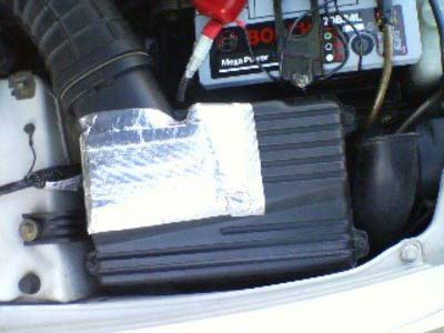 装着場所を変更できるように、とりあえずエアクリボックス(2セット)と吸気パイプ(1セット)に取り付けてみました。 |