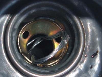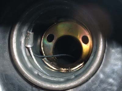 次に給油口にピッタリフィットさせるために、ひと回り小さいリング(約φ40)を作り、圧着端子でリングを固定しました。 万が一のことを考えると、このようなカスタマイズは必要でしょう。 |