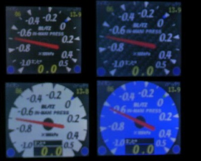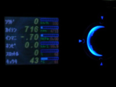 普段は針メーター画面を使用してます。 針はインマニ・センター下は瞬間燃費。 上の2つは文字が小さく確認しずらいので水温・電圧の表示にしました。 |