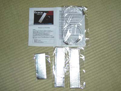 Ecocaイオンシート中が1枚、大が2枚、そして取り付けバンドの60〜80パイ用が1個、80〜100パイ用が2個です。 ここで一つ問題がありました。 取り付けバンドで80〜100パイ用が長過ぎでソニカのどこにも合いそうにありません。 フォレスターに取り付けているフジツボワゴリスですらメインパイプが60パイなので、明らかにバンドが長過ぎでどういった車への取り付けを想定したのかよく分かりません。 そしてバンド本体も80パイ以下の締め付けが出来ないようになって、おり今回は使用しませんでした。 |