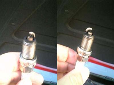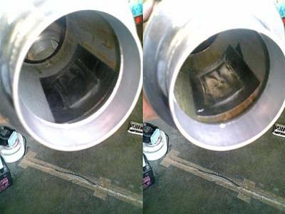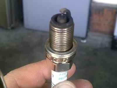 何故だか焼けすぎ真っ白になりました。 周りに蓄積したカーボンが簡単に剥がれる状態です。 |