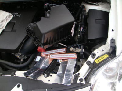 2週間程経過した時点でサイドの貼り付け部分が浮き出してしまいましたが、これは固定シートの使い方に問題があるのが原因なので今後改良しようと思います。 今は時々エンジンルームを開けた際に浮いてる部分を手で押して戻しています。 |