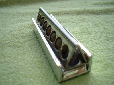 意外とコンパクト、全長10cmほどの品物です。 エンジンヘッドに『ポンと置くだけ』の簡単施工がウリです。 7個の穴には、セラミックを焼き付けたボールが6個と、天然石?が1個入っています。 企業秘密らしく中身は教えてもらっていませんが、怪しくて取り付け前からワクワクします。 |