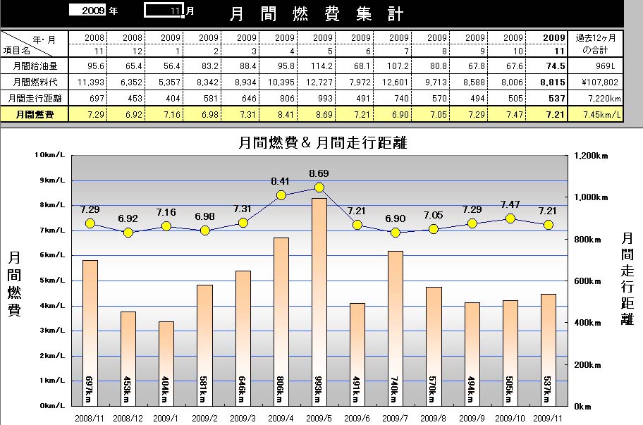 6月以降高速道路を全く使用していないクルマになってしまいました。たまたま他のクルマで代用しているだけなのですが。 平均で7km/L台は、まだまだ燃費の向上の伸びしろがあると思っています。 これからに期待しているところです。 |