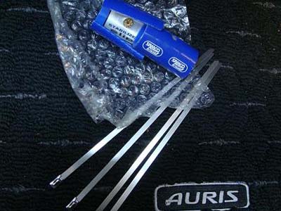 装着前に、設置箇所の汚れを拭き取りました。 まずは、フロント左側から・・・ |