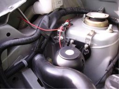 上記にて室内側の配線等は一通り終了しましたので、今度は場所をエンジンルームに移動して、サイレンへの配線を行います。 |