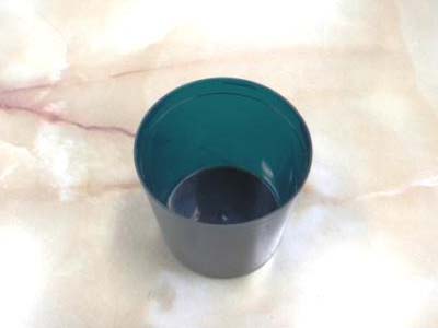 ヘアトニックの蓋です。底を抜いて容器の外側として使用します。 |