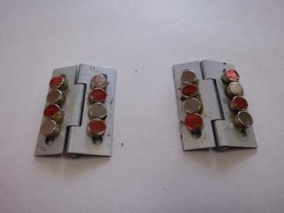 蝶番の片側に磁石4個をS-N-S-Nと並べ、反対側にN-S-N-Sと並べました。 |
