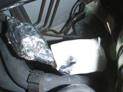燃料パイプにセットしたものに、薄い発砲スチロールのシートを巻きました。 |