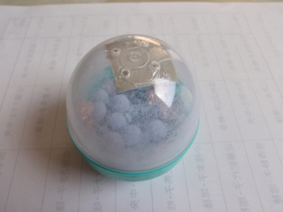 先ほどの材料をすべてガチャガチャのケースに入れました。 |