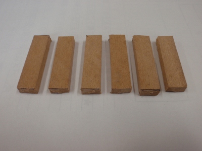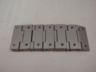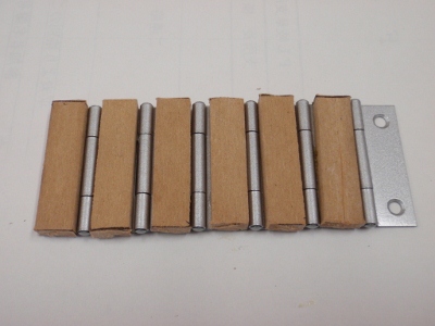 その辺に転がっていた木片が丁度、蝶番の幅にぴったりだったのでカットして6個用意しました。 |