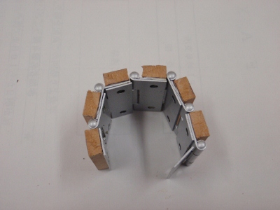 蝶番は隣と重なるようにして接着して、その外側にあたるところに木片を貼り付けました。 |