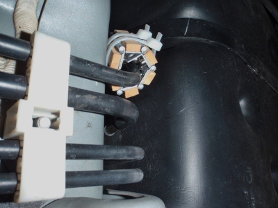 磁石はエンジンに近いほうが効果があるということがどこかに書いてありましたが、既にエンジンルームの燃料パイプには2種類の磁石を取り付けて(グッズアルバム参照)ありますし、熱の影響を受けないように、また根拠はありませんが、燃料タンクに近いほうが早い時点で磁力の影響を受け効果が上がるような気がします。 |