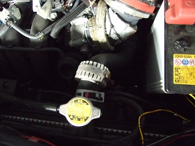ラジエターホースは、エンジンへ水を供給するラインと、戻りのラインの2つがありますが、メーカーによると「取り付け場所はそのどちらでも可」とのこと。 |