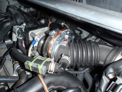 エアクリーナーボックスからサージタンクへ行く途中の蛇腹を過ぎたところに取り付けました。 |
