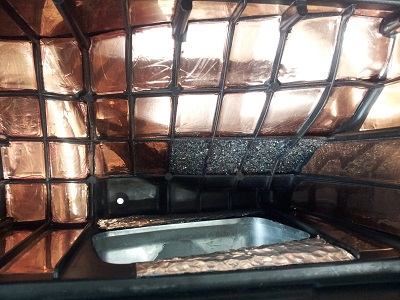 エアクリーナーケース内側升目に銅板(接着剤付き銅板)を敷き詰めます。 |
