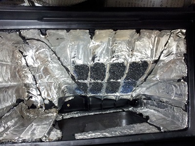 その上にデッドニング施工で余った制振材をアイロンで温めて貼り付けます。 |