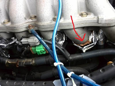 結果として、出足、加速、滑らかさに一番効果があったと思われるのはインテークマニホールド(6本)に巻いたベルトです。 |