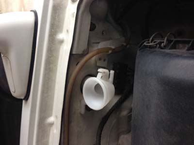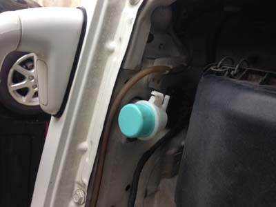 そこでウォッシャータンクの入り口に適当なボトルキャップを被せて処理しました。 |