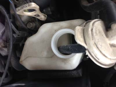 ラジエターリザーブタンクの蓋を開き準備完了。 |