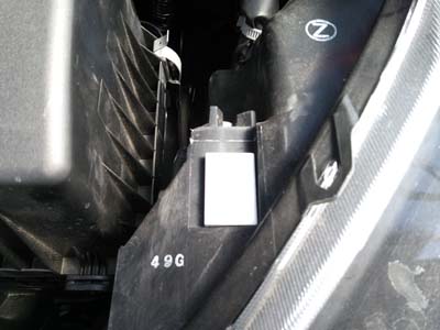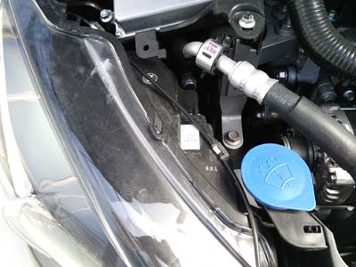 手ごろな取付場所を探してみると、いい具合にヘッドライトに窪みがありました。 |