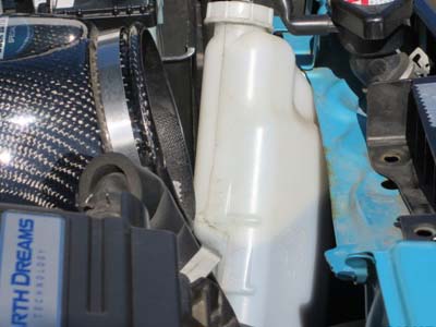ラジエターのすぐ後ろにリザーブタンクがあります。 |