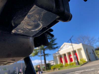 オイルパン裏側に両面テープで装着。 |