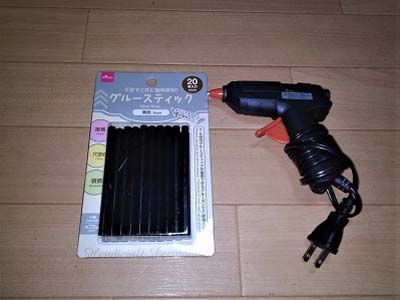 ダイソーで購入したグルーガンの機械とスティックです。 |