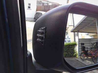 ここが一番影響しそうですが、サイドミラーのボディー側に貼り付けました。 |
