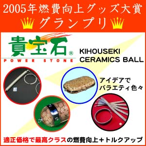特定の製品も持たずにエントリーしましたので、全く結果のわからない展開でしたが、多くの方のご協力とご愛顧を感じました。 この名誉に恥じないように今後も活動していきたいと思います。 貴宝石は弊社でもまだまだ活用法を研究し続けている、本当に面白い素材です。 燃費向上&トルクアップもその活用例の一つですが、エコロジー製品、環境浄化製品、健康グッズなど、無限の可能性を秘めています。 弊社は貴宝石(R)の総発売元として、これからも本当に良い製品と素材を適正価格でご提供いたします。 |