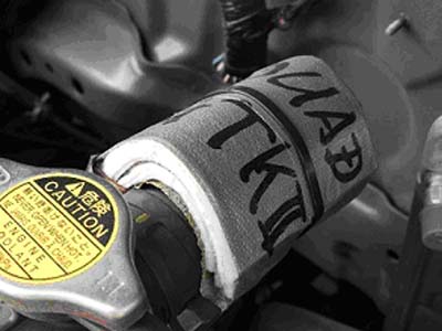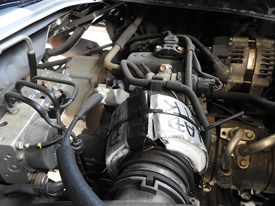 というか、助手席シートを跳ね上げれば、エンジン全体をみることができます。ここの図太いエアダクトに、1対のデュアドGTKを2本、挟み込むように装着してみました。吸気系デュアドの復活ですね(笑)。