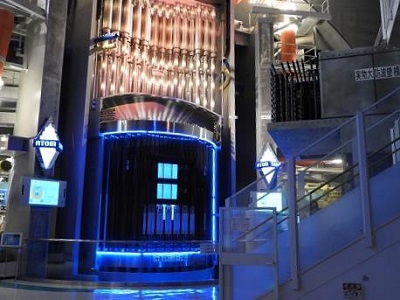画像は、ZONE D「原子力発電のしくみ」内の実物大原子炉模型。高さ22m。