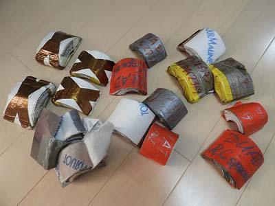 外観上では、赤色ガムテープが純チタン板、銀色ガムテープは純ジルコニウム板に区別させました。