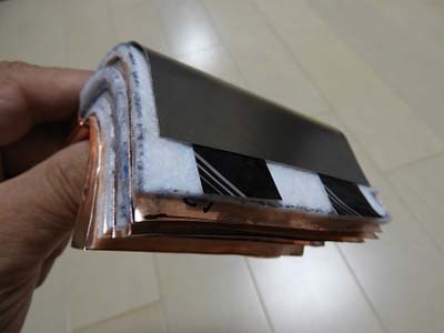 デュアドプレミアムで使用された銅板、いうなれば貴宝石パウダーをシリコーンシーラント材で塗り固められた銅板も、再利用。銅板の枚数は、新作も同じにします。エコ・トルマリンシートの枚数も同じく据え置き。