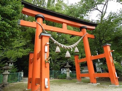 国道1号線からさほど遠からぬ距離に見られる、形の良い鎮守の森の中央に、際立つ朱色の鳥居。