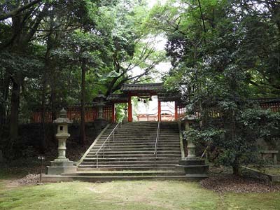 約100段の石段を上ると木漏れ日のなかの大きな広場に出ます。地面は適量の苔に覆われ、遠く、時空の彼方の戦国時代の舞台になっていただろうかの想いにかられました。